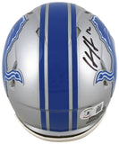 This Autographed Speed Mini Helmet has been Personally Signed by Hendon Hooker of the Detroit Lions. This item is 100% Authentic to include a hologram by Beckett Authentication Services. This item will come with the new Beckett Authentication hologram that has a scannable QR code rather than the traditional COA. If you would like to have a COA, you are welcome to reach out to Beckett for a printed certification once you receive your item. This is a BAS Witnessed Protection Program item which means a Beckett Authentication Service representative was present when this item was being signed. We conducted an autograph signing with Hendon Hooker where multiples of the same item were signed. While the photographs are representative of this item, the size, placement and strength of the signature may vary. Each item is hand signed, therefore, each autograph is unique. This item can be verified through BAS Witnessed.