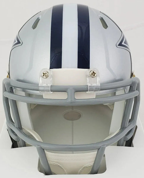 This autographed Riddell Speed mini helmet has been personally hand-signed by Malik Hooker of the Dallas Cowboys.This autograph is certified by Players Ink. It comes with the numbered authentication hologram with a QR code that verifies the authentication on the Players Ink website. Scan the QR code with your mobile phone to verify the authenticity.