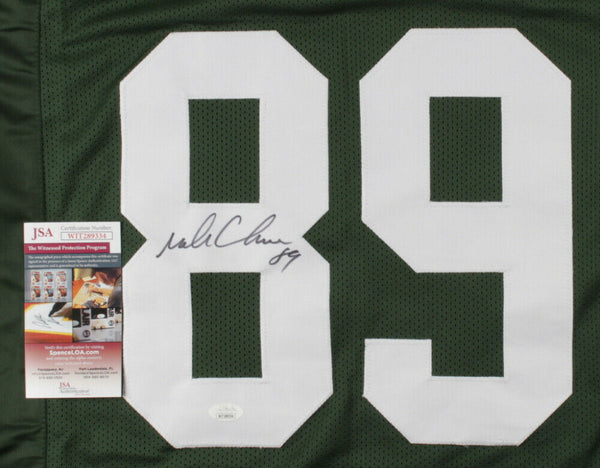 Custom on-field style jersey. Everything sewn on, size XL. Hand-signed and inscribed in black felt-tip pen by Mark Chmura. The autograph includes an official James Spence Authentication (JSA) hologram and matching COA for authenticity purposes. The signing of this item was witnessed by JSA.Authentication: JSA COA Shop our ebay store / Friendly Confines Collectibles for thousands of different autographed jerseys