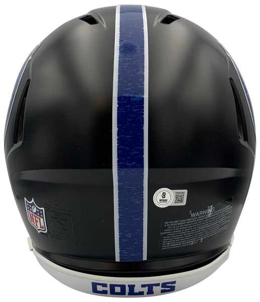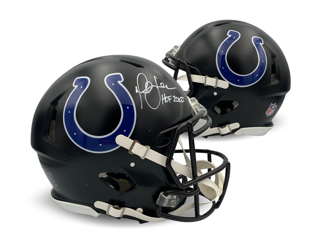 Marshall Faulk has autographed this Indianapolis Colts 2023 Indiana Nights black full sized authentic helmet and written HOF 2011 his Hall of Fame year. Autograph was witnessed and authenticated by Beckett Authentication Services (BAS) who was present for the signing with him and witnessed him signing your item. Simply scan the QR code on the hologram with your phone to verify.