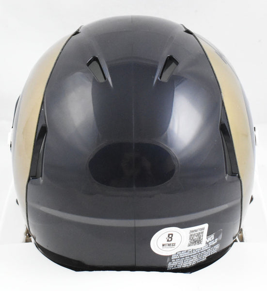 This is a hand autograph of Marshall Faulk of the Rams on a Riddell Football 00=16 Speed Mini Helmet. This item has a Beckett Witnessed Authentication, which comes with a numbered hologram and a QR code for verification. You can view this item on the Beckett Authentication website and it shows when and where the item was signed. It was signed either at a public autograph appearance or a private signing. This is a stock photo of the item. Although you may not receive this exact item, the item you receive is virtually identical and brand new in great shape. This is a hand autograph of Marshall Faulk of the Rams on a Riddell Football 00-16 Speed Mini Helmet. This item has a Beckett Witnessed Authentication, which comes with a numbered hologram and a QR code for verification. You can view this item on the Beckett Authentication website and it shows when and where the item was signed. It was signed either at a public autograph appearance or a private signing. This is a stock photo of the item. Although you may not receive this exact item, the item you receive is virtually identical and brand new in great shape.