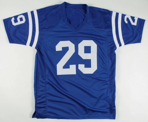 Custom on-field style jersey. Everything is sewn on, size XL. Hand-signed by Marshall Faulk (HOF).The lot / autograph(s) includes an official Beckett Authentication Services serially-numbered hologram and matching COA for authenticity purposes. The signing of this item was witnessed by Beckett.Authentication: Beckett COA