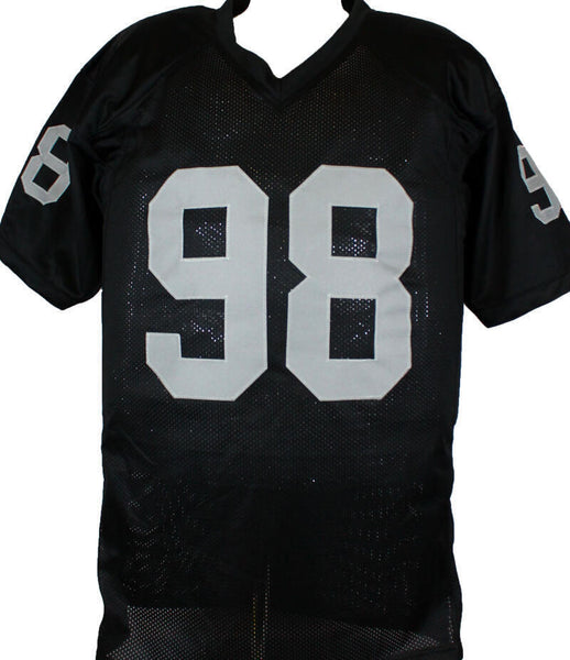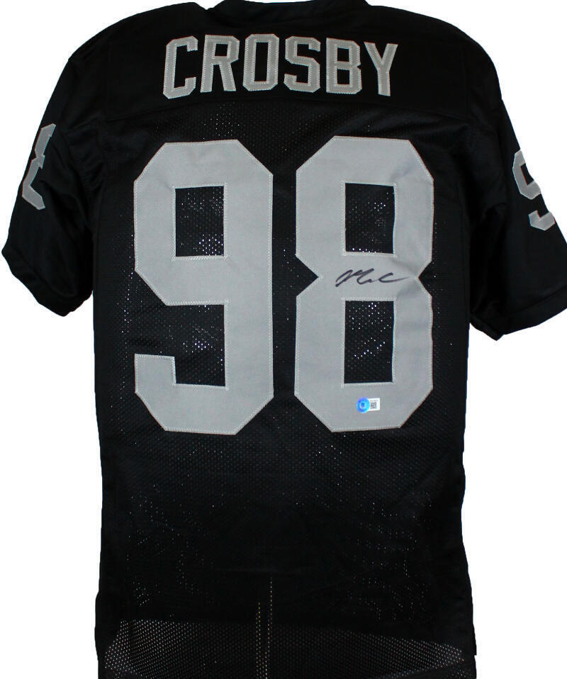 Maxx Crosby Autographed Black Pro Style Jersey-Beckett W Hologram *Black THIS IS NOT AN NFL JERSEY. THIS HAS NO TAGS, NO LOGOS, NO EMBLEMS. This is a Maxx Crosby of the Las Vegas Raiders custom made (non name brand) authentic style (stitched letters and numbers) jersey. This item has a Beckett Witnessed Authentication, which comes with a numbered sticker hologram and a QR code for verification. You can view this item on the Beckett Authentication website. It was signed either at a public autograph appearance or a private signing. This is a stock photo of the item. Although you may not receive this exact item, the item you receive is virtually identical, brand new, and in great shape. Jersey size is XL.