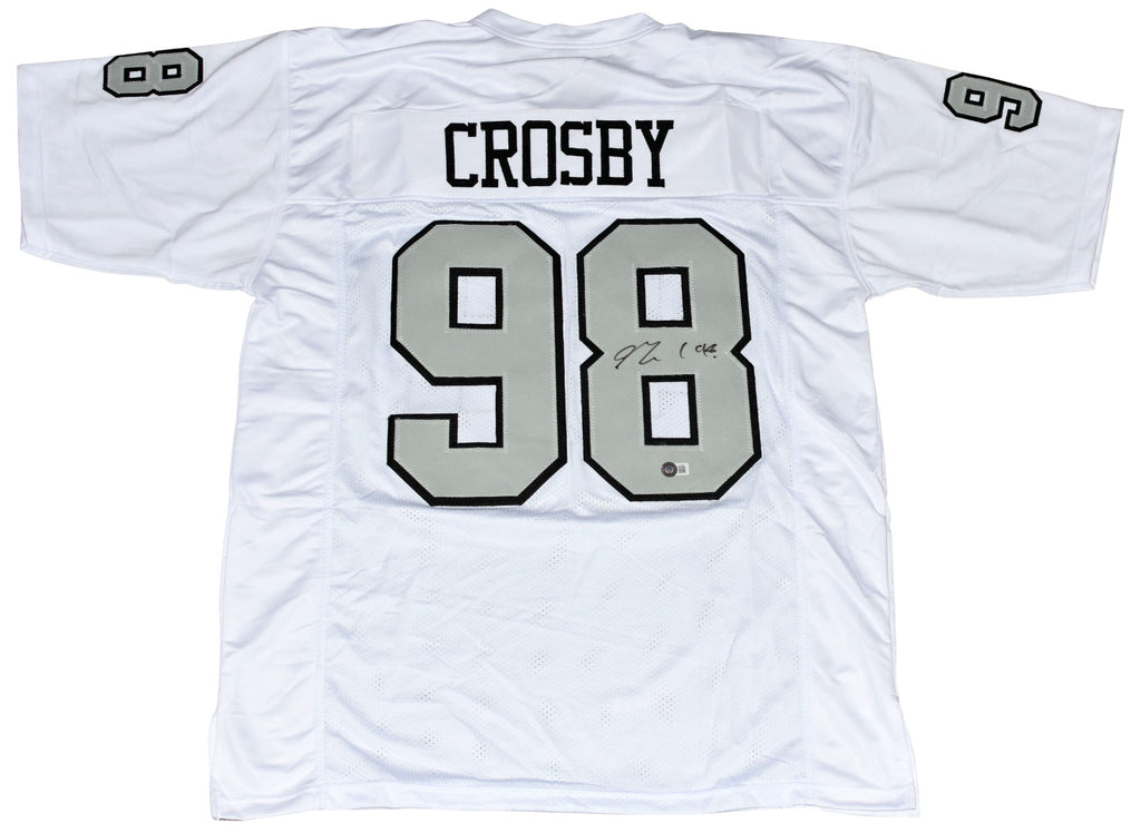 MAXX CROSBY SIGNED AUTOGRAPHED LAS VEGAS RAIDERS #98 WHITE JERSEY BECKETT