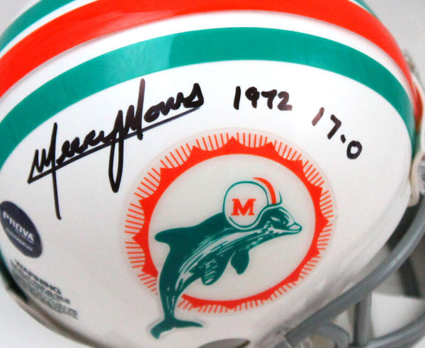 Mercury Morris Autographed MIami Dolphins 1972 Mini Helmet w/Insc.-Prova This is a hand autographed Mini Helmet of Mercury Morris of the Miami Dolphins. This is a Riddell 1972 Miami Dolphins Football Mini Helmet. This item has a Prova Authentication, which comes with a Prova numbered sticker. You can view this item on the Prova Authentication website, it shows when and where the item was signed. It was signed either at a public autograph appearance or a Private Signing. This is a stock photo of the item. Although you may not receive this exact item, the item you receive is virtually identical and brand new in great shape.