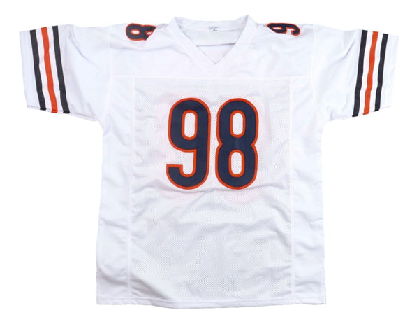Featured is a Montez Sweat signed custom football jersey. This jersey has been hand signed by Sweat and comes with the PSA/DNA hologram. This jersey features professionally sewn letters and numbers and is size XL. This jersey has no team tags or emblems and is intended as a sports collectible. This jersey would make a great addition to any sports memorabilia collection! SPECIFICATIONS Autographed By: Montez Sweat Team: Chicago Bears Sport: Football Authentication: PSA/DNA Authentication Services