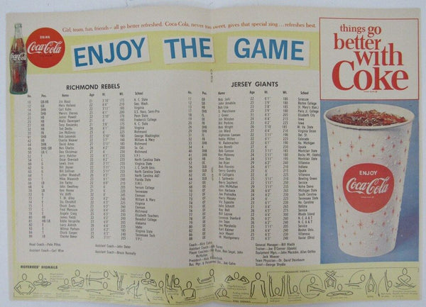 November 21, 1964 atlantic coast pro football league program jersey city giants vs. richmond rebels at richmond stadium.