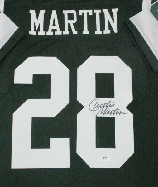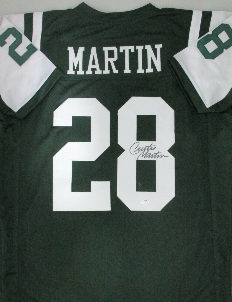 Custom Replica New York Jets jersey hand signed by Hall of Famer CURTIS MARTIN. The signature is in Black Sharpie. This jersey was signed at a private signing with us and would make a great addition to any JETS collection! This autograph is guaranteed to be 100% authentic and will include a PSA Authentication coa with matching serial numbers.
