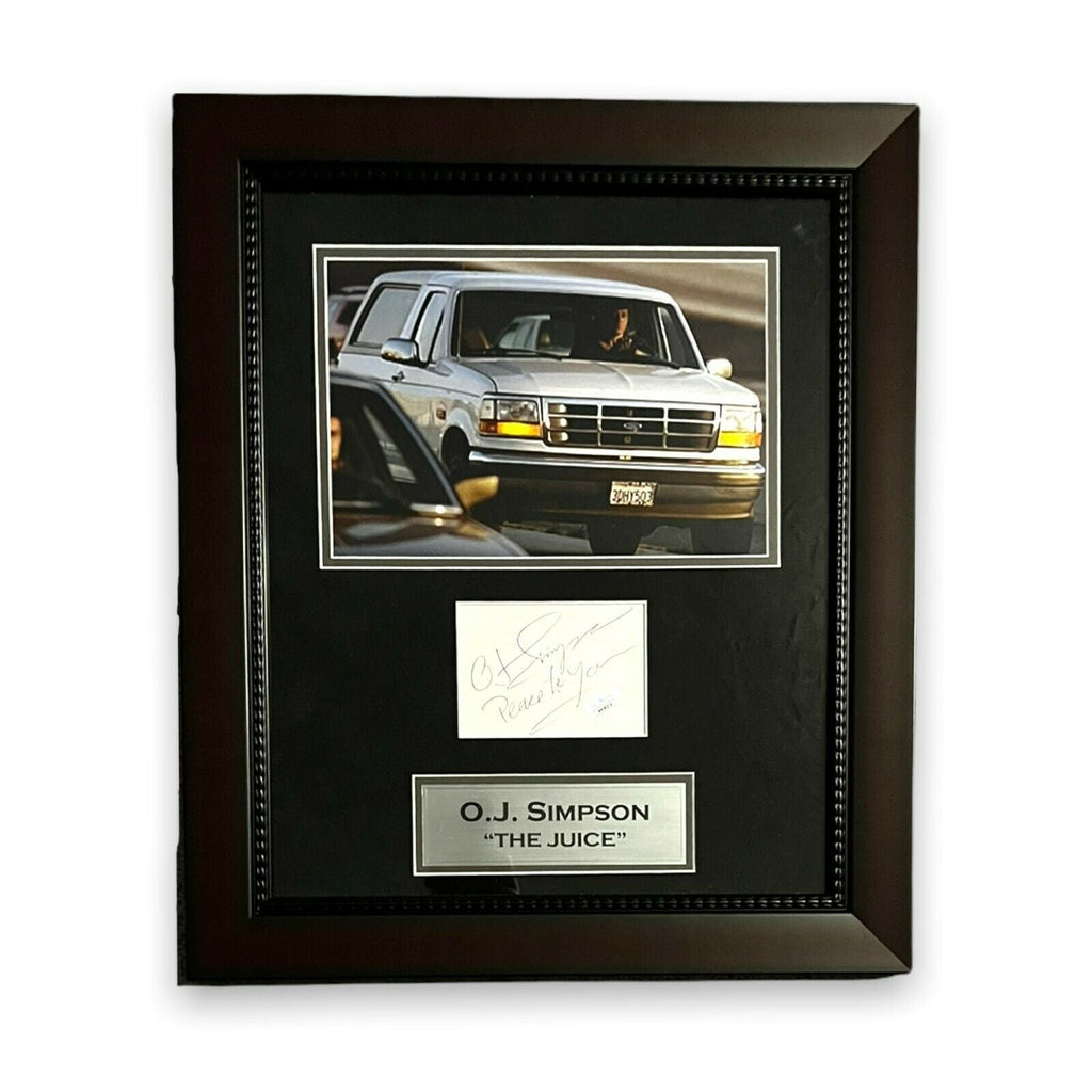 This cut custom framed to 16x19 has been personally hand-signed by OJ Simpson"Peace To You" Inscription100% Authentic Certificate of Authenticity by JSA