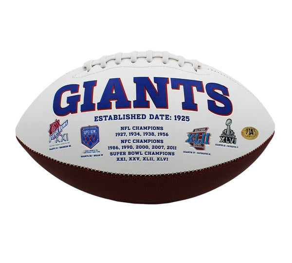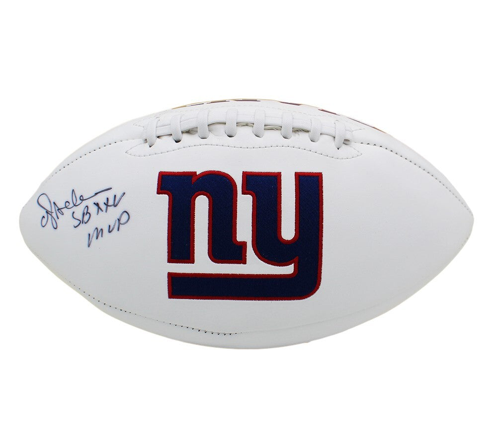 New York Giants Embroidered White NFL Football hand signed by Ottis Anderson. The item and signature are in excellent condition. In addition to signing his name, Ottis inscribed "SB XXV MVP" on the item. Ottis was drafted into the NFL in 1979 Round:1 Pick:8. Ottis 2xSuper Bowl champion (XXI,XXV). Ottis was Super Bowl MVP (XXV). Ottis is NFL Offensive Rookie of the Year (1979). Ottis was NFL Comeback Player of the Year (1989). AUTHENTICATION: The item is accompanied by MAB Celebrity Services Hologram.