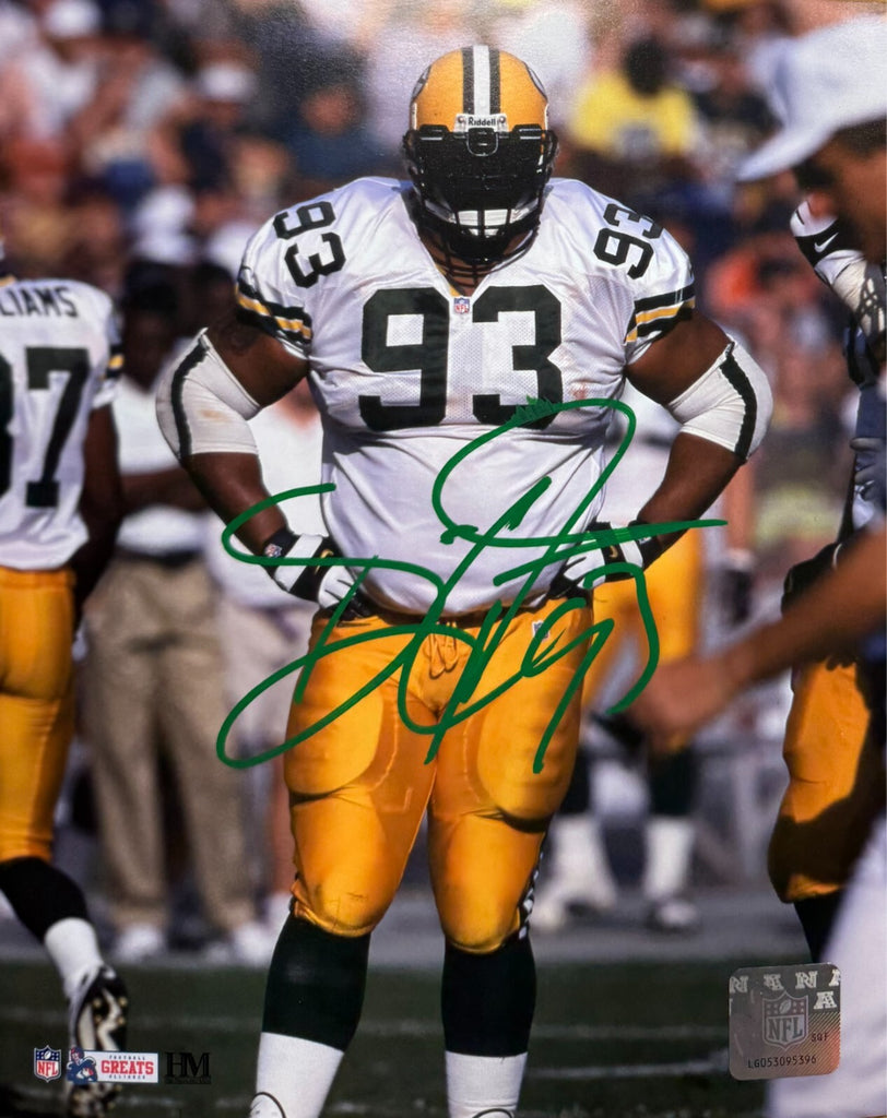 An 8x10 hand signed photo of Green Bay Packers Super Bowl XXXI Champion GILBERT BROWN. The signature is in Green Paint Pen. Brown was a member of the Packers Super bowl XXXI championship team. This would make a great addition to any Packers collection. This photo was signed at a private signing with us. This item is guaranteed to be 100% authentic and will include a COA with the matching tamper proof Holograms.