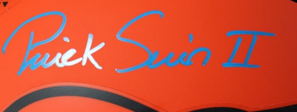 Elevate your collection with the Patrick Surtain II Autographed, inscribed "24 DPOY" Broncos Orange Rave Pro Authentic Helmet, a must-have for any serious football memorabilia enthusiast. This piece celebrates the standout talent of Patrick Surtain II, featuring his authentic signature authenticated by Beckett Authentication Services. It represents a significant acquisition for fans of the Denver Broncos and football aficionados alike. Crafted with attention to detail, this helmet is a striking representation of Surtain's athletic prowess on the field. The orange Rave design captures the vibrant spirit of the game, while the autograph adds a personal touch from the rising star. This helmet is a tribute to the player's achievements and a cherished keepsake for any collector.