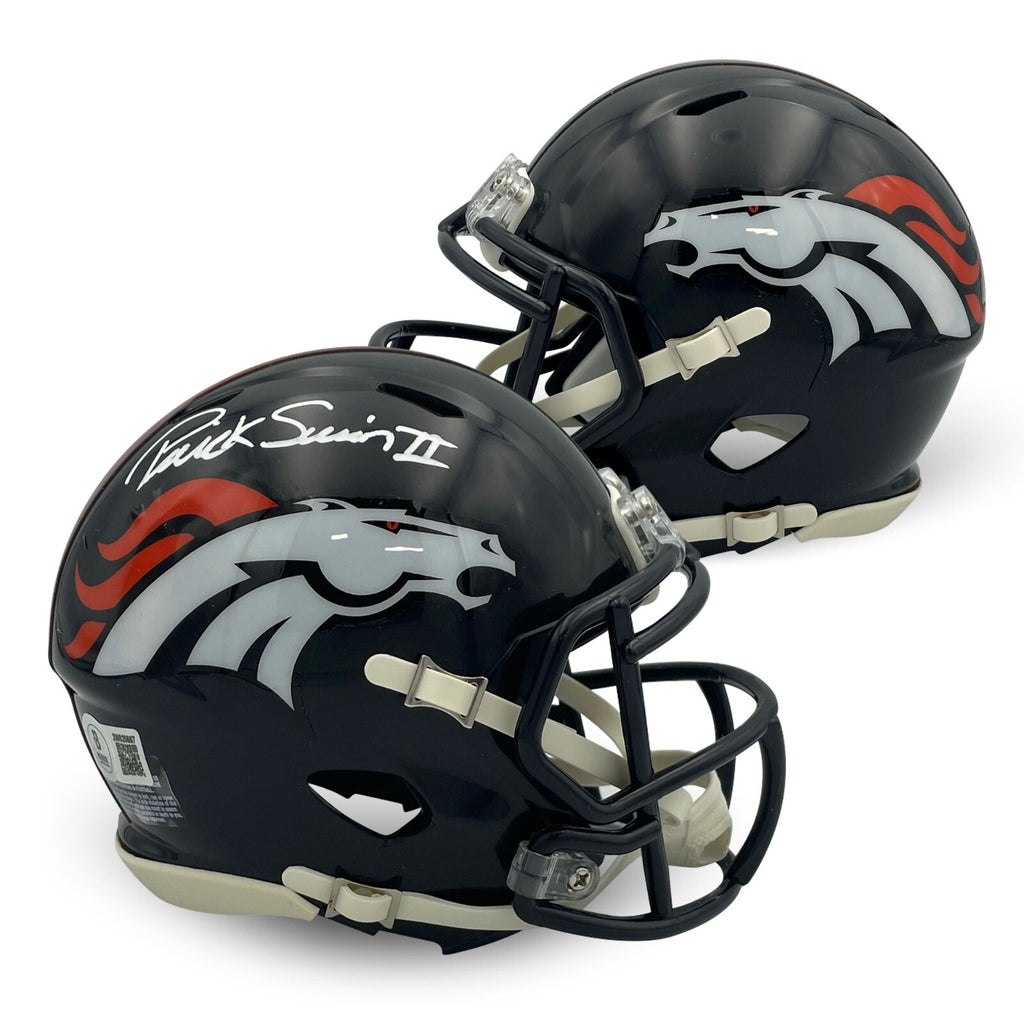 This officially licensed Denver Broncos mini helmet features the bold signature of standout cornerback Patrick Surtain II. Authenticated by Beckett this collectible is a perfect addition to any football fans display honoring one of the leagues top young defenders.