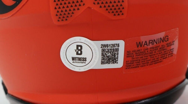 The product is an autographed Patrick Surtain II Denver Broncos orange rave mini helmet, authenticated by Beckett Authentication Services (BAS). This collectible item features the signature of the football player and is a must-have for fans of the Denver Broncos and autographed sports memorabilia. The unique design of the helmet adds to its appeal as a standout piece in any sports memorabilia collection.
