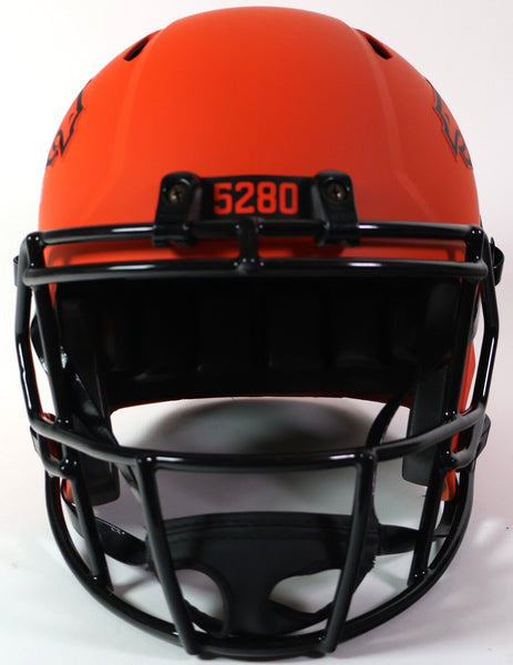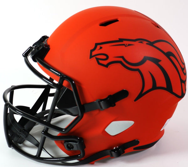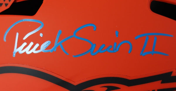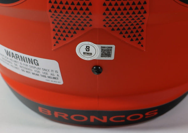 The product is a Patrick Surtain II autographed Denver Broncos Rave Replica helmet, featuring a personalized "GO BRONCOS" inscription. The signature has been authenticated by Beckett Authentication Services (BAS), ensuring its authenticity. This unique piece is a must-have for any football fan or collector looking to add a piece of memorabilia from the NFL star to their collection. The helmet represents the player's connection to the Denver Broncos and is a great way to show support for both the team and the athlete.