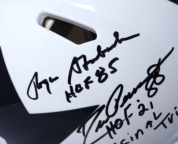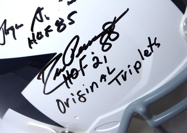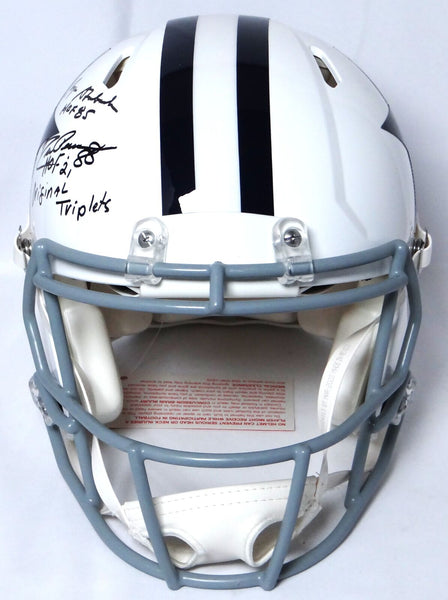 This is a Drew Pearson, Roger Staubach, and Tony Dorsett hand autographed Riddell football full size 60-63 speed authentic helmet inscribed with "HOF" and "Original Triplets". This item has a Beckett Witnessed Authentication, which comes with a Beckett numbered sticker hologram and a QR code for verification. You can view this item on the Beckett Authentication website, and it shows when and where the item was signed. It was signed either at a public autograph appearance or a private signing. This photo is the exact item that you will be receiving. Please see picture for further details. We appreciate your interest in our items, and we hope to provide you with a smooth and professional transaction. This is a Drew Pearson, Roger Staubach, and Tony Dorsett hand autographed Riddell football full size 60-63 speed authentic helmet inscribed with "HOF" and "Original Triplets". This item has a Beckett Witnessed Authentication, which comes with a Beckett numbered sticker hologram and a QR code for verification. You can view this item on the Beckett Authentication website, and it shows when and where the item was signed. It was signed either at a public autograph appearance or a private signing. This photo is the exact item that you will be receiving. Please see picture for further details. We appreciate your interest in our items, and we hope to provide you with a smooth and professional transaction.
