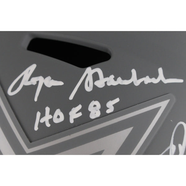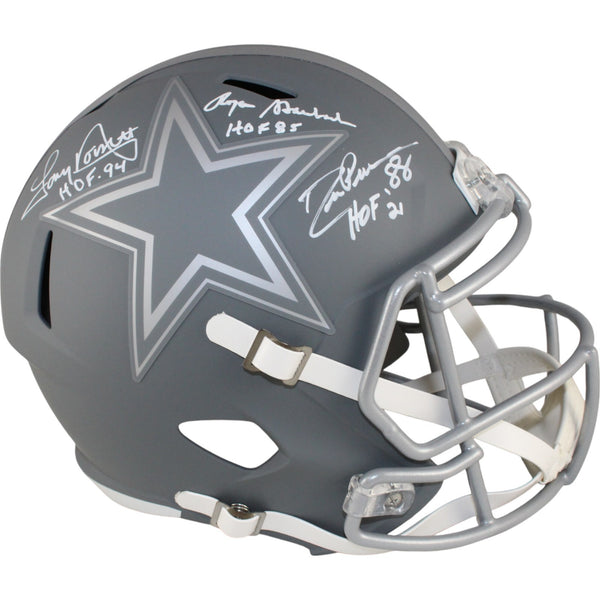 The number in the listing title is just an inventory sku for our records and is not the authentication number. The item pictured is a stock photo unless otherwise noted. This is a Dallas Cowboys Replica Slate Full Size Helmet that was personally autographed by Drew Pearson, Roger Staubach, and Tony Dorsett. Includes a certificate of authenticity from Beckett Authentication Services (BAS) and Denver Autographs.FREE SHIPPING within the USA on orders over $10!