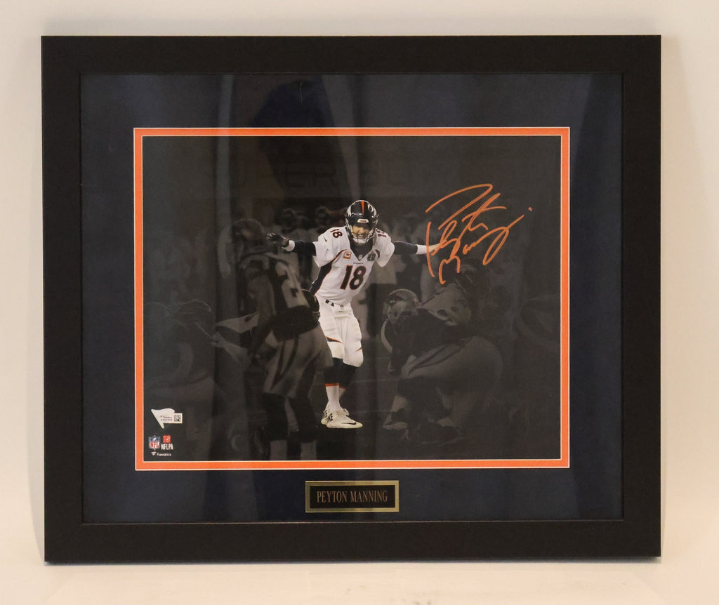 Introducing a unique collector's item for avid football enthusiasts - the Peyton Manning Autographed Denver Broncos 11X14 Photo Frame. This framed memorabilia captures a defining moment in Manning's legendary career, showcasing an authentic 11X14 photo of the iconic quarterback in action with the Denver Broncos. Each frame comes personally signed by Peyton Manning, adding an exclusive touch to your sports memorabilia collection. Manning, a two-time Super Bowl champion and five-time NFL MVP, is celebrated as one of the greatest quarterbacks in NFL history. The high-quality black frame complements the vivid colors of the photo, creating a stunning display piece for your home, office, or fan cave. This limited edition autographed photo frame is a must-have for any Broncos fan or football memorabilia collector. Key Features: Authentic Peyton Manning autograph High-quality 11X14 photo capturing a memorable Broncos moment Black frame for an elegant display Limited edition collector's item Don't miss the opportunity to own a piece of NFL history with the Peyton Manning Autographed Denver Broncos 11X14 Photo Frame. Elevate your sports memorabilia collection and showcase your passion for the game with this exceptional piece. Order yours now and celebrate the legacy of one of football's greatest quarterbacks!