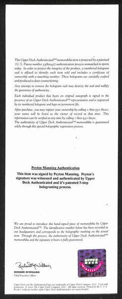 Peyton Manning HOF Signed/Autographed 7x7 Photo Indianapolis Colts. This photo is authenticated by Upper Deck and includes their tamper-proof hologram sticker and certificate of authenticity.