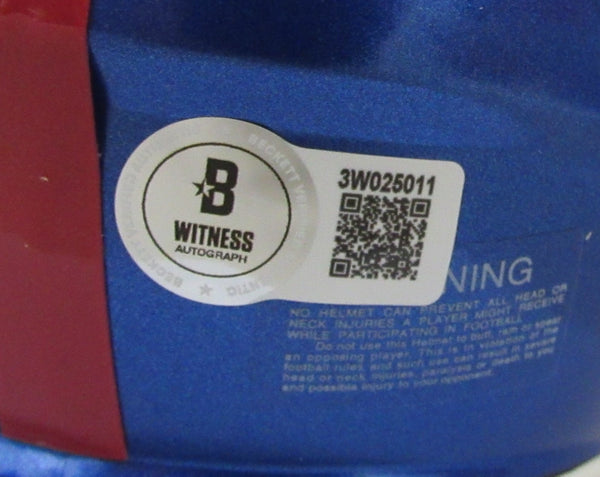 Phil Simms Signed/Inscribed "SB XXI M.V.P." Mini Football Helmet New York Giants. This helmet is authenticated by BAS/Beckett and includes their tamper-proof hologram sticker.