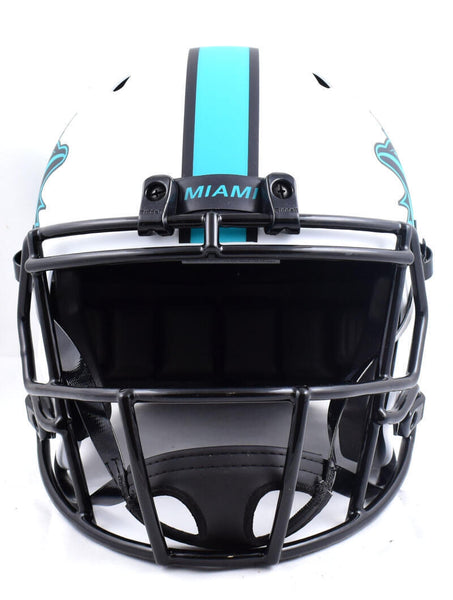 Raheem Mostert Autographed Miami Dolphins F/S Lunar Speed Helmet-Beckett W Hologram *Teal This is a Raheem Mostert of the Miami Dolphins hand autographed Riddell Full Size Lunar Speed Replica Helmet. This item has a Beckett Witness Authentication, which comes with a numbered hologram and a QR code for verification. You can view this item on the Beckett website and it shows when and where the item was signed. It was signed either at a public autograph appearance or a private signing. This is a stock photo of the item. Although you may not receive this exact item, the item you receive is virtually identical, brand new, and in great shape.