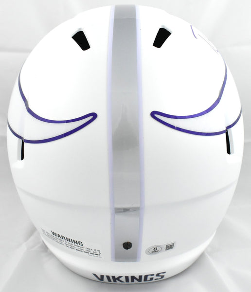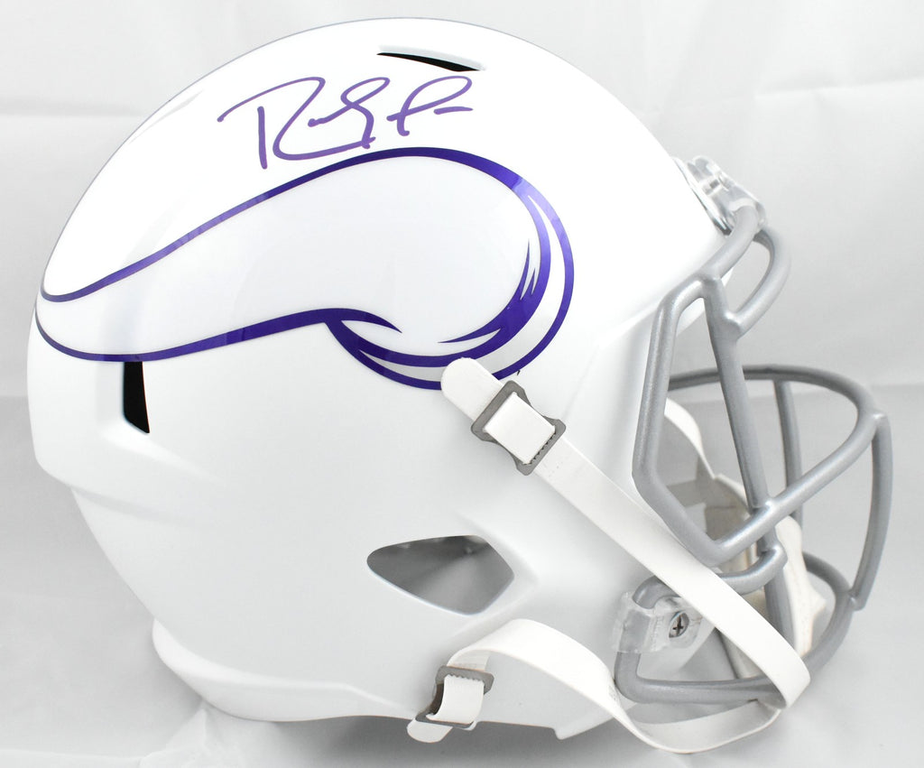 This is a Randy Moss of the Minnesota Vikings autographed Riddell football full size Alternate 2024 Speed Replica helmet. This item has a Beckett Witnessed Authentication, which comes with a numbered hologram and a QR code for verification. You can view this item on the Beckett Authentication website, and it shows when and where the item was signed. It was signed either at a public autograph appearance or a private signing. This is a stock photo of the item. Although you may not receive this exact item, the item you receive is virtually identical, brand new, and in great shape. *Autograph location may vary* This is a Randy Moss of the Minnesota Vikings autographed Riddell football full size Alternate 2024 Speed Replica helmet. This item has a Beckett Witnessed Authentication, which comes with a numbered hologram and a QR code for verification. You can view this item on the Beckett Authentication website, and it shows when and where the item was signed. It was signed either at a public autograph appearance or a private signing. This is a stock photo of the item. Although you may not receive this exact item, the item you receive is virtually identical, brand new, and in great shape. *Autograph location may vary*