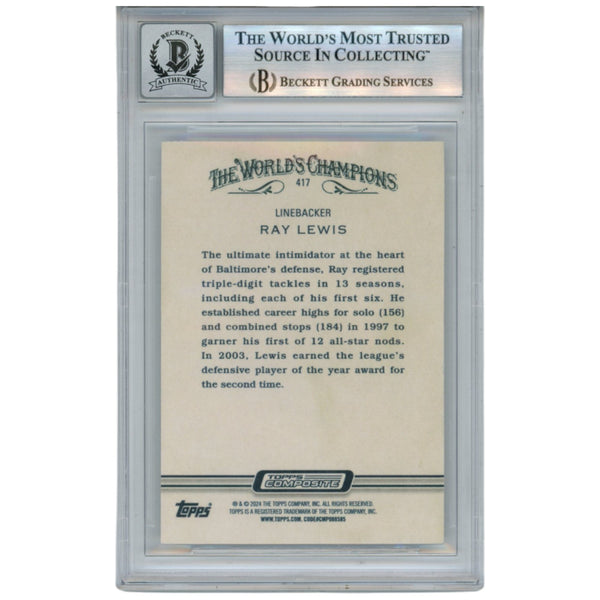The number in the listing title is just an inventory sku for our records and is not the authentication number. The item pictured is a stock photo. There are multiple quantities of this item. Each of these items is unique because they are individually hand-signed. While the photographs accurately represent the item itself, please note that the signature's size, exact placement, and strength may differ on the one you receive. This is a Baltimore Ravens 2023 Topps Allen & Ginter #417 Slabbed Trading Card that was personally autographed by Ray Lewis. Includes a certificate of authenticity / hologram from Beckett Authentication Services (BAS) and Denver Autographs. FREE SHIPPING within the USA on orders over $10!
