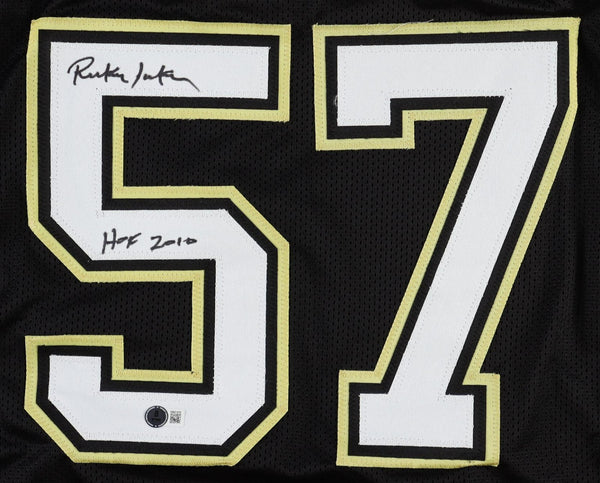 Custom on-field style jersey. Everything is sewn on, size XL. Hand-signed and inscribed by Rickey Jackson (HOF).The autograph includes an official Beckett Authentication Services serially numbered scannable hologram and QR Code card for authenticity purposes.Authentication: Beckett Scannable Hologram with QR Code card