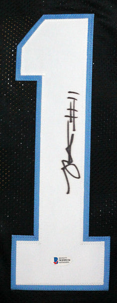 Robby Anderson Autographed Black Pro Style Jersey - Beckett W *Black THIS IS NOT AN NFL JERSEY. THIS HAS NO TAGS, NO LOGOS, NO EMBLEMS. This is a hand autograph of Robby Anderson on a Custom Made (non name brand) Authentic Style Jersey with stitched letters and numbers. This item has a Beckett Witnessed Authentication, which comes with a numbered and a matching Beckett Certificate of Authenticity. You can view this item on the Beckett Authentication website and it shows when and where the item was signed. It was signed either at a public autograph appearance or a private signing. This is a stock photo of the item. Although you may not receive this exact item, the item you receive is virtually identical and brand new in great shape. Jersey size is XL.