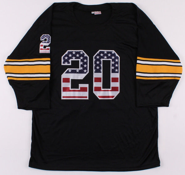 Custom on-field style jersey. Everything is sewn on, size XL. Hand-signed and inscribed in black felt-tip pen by Rocky Bleier. The lot / autograph(s) includes an official Total Sports Enterprises (TSE) hologram and matching COA for authenticity purposes.Authentication: Total Sports Enterprises COA