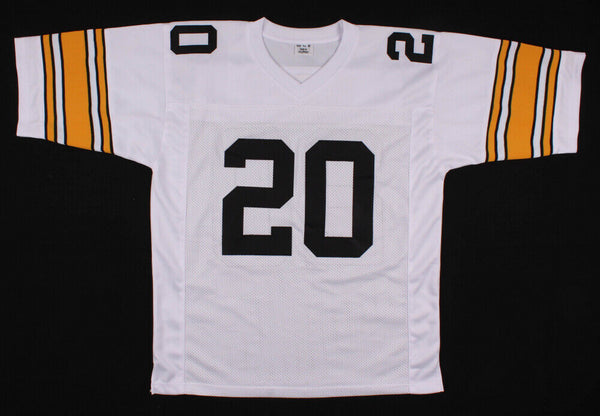 Custom on-field style jersey. Everything sewn on, size XL. Hand-signed in silver felt tip pen by Rocky Bleier. The lot / autograph(s) includes an official James Spence Authentication (JSA) hologram and matching COA for authenticity purposes.Authentication: JSA COA