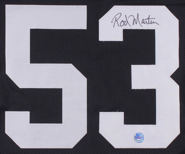 Custom on-field style jersey. Everything is sewn on, size L. Has been hand-signed in black felt-tip pen by Rod Martin. The lot / autograph(s) includes an official Pro Player hologram for authenticity purposes.Authentication: Pro Player Hologram