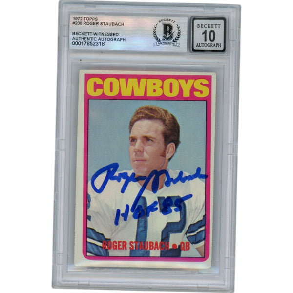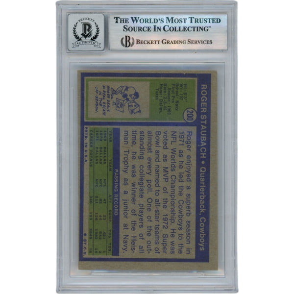 Roger Staubach Autographed 1972 Topps #200 HOF Slab Trading Card Beckett 50070