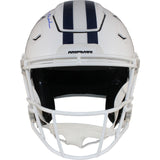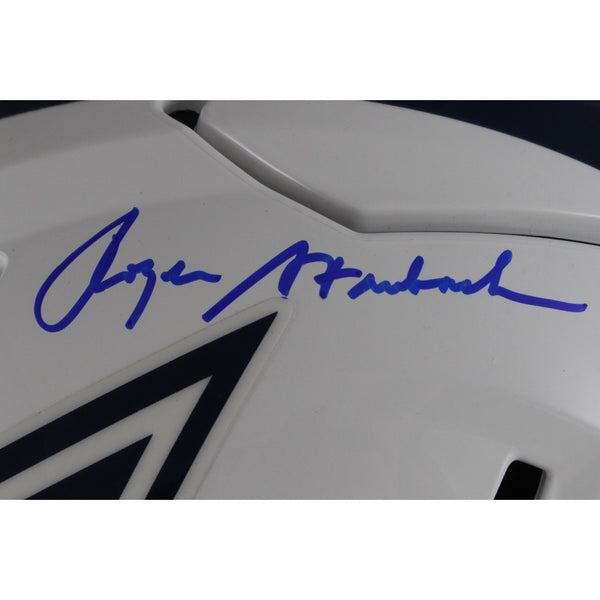 The number in the listing title is just an inventory sku for our records and is not the authentication number. The item pictured is a stock photo unless otherwise noted. This is a Dallas Cowboys Full Size 2022 Alternate SpeedFlex Helmet that was personally autographed by Roger Staubach. Includes a certificate of authenticity from Beckett Authentication Services (BAS) and Denver Autographs.FREE SHIPPING within the USA on orders over $10!