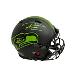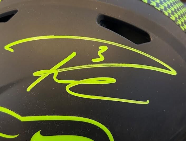 This is a Seattle Seahawks Eclipse Helmet autographed by former Seahawks Quarterback Russell Wilson. Russell Wilson won a Superbowl and Superbowl MVP during his incredible tenure with the Seahawks. The 9-time pro-bowler will go down as an incredible Quarterback. This helmet comes with a Certificate of Authenticity from Latitude Sports Marketing and a tamper resistant hologram from Russell Wilson Authenticated on the back of the helmet. This process helps to ensure the product is authentic. Latitude Sports Marketing has been in business since 2005 and is one of the leading memorabilia companies in the Rocky Mountain region. This autographed helmet includes a certificate of authenticity and a tamper-resistant hologram from Latitude Sports Marketing.