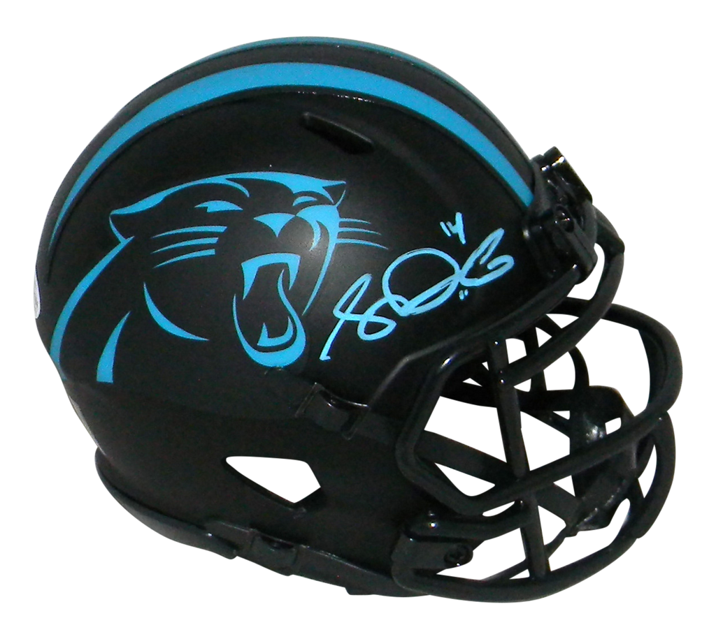 Sam Darnold, star quarterback for the Carolina Panthers, has hand signed this Panthers Riddell Speed Eclipse mini helmet at a private signing. This item comes with a certificate of authenticity (COA) from Beckett Authentication Services and was signed in the presence of one of their representatives. You will receive a serial-numbered COA along with a matching serial-numbered sticker on the helmet. The authenticity can be verified online by entering the serial number.Item pictured may not be the exact item you will receive. It will be similar quality, and we guarantee your satisfaction.