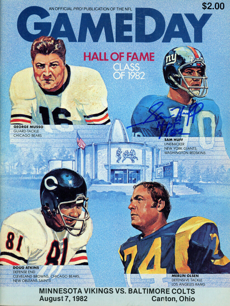 Sam Huff Autographed/Signed 1982 Gameday Magazine Beckett 38057 The number in the listing title is just an inventory sku for our records and is not the authentication number. This is the exact item that you will receive so please see pictures for condition. This is a magazine that was personally autographed by Sam Huff. Includes a certificate of authenticity from Beckett Authentication Services (BAS) and Denver Autographs.