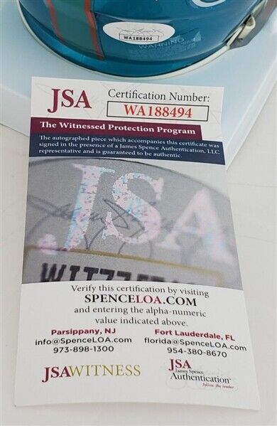 This autographed Riddell Flash Alternate Speed mini helmet has been personally hand-signed by Sam Madison of the Miami Dolphins. This autograph is certified by James Spence Authentication's (JSA) Witnessed Protection Program. That means that a JSA representative was present when this item was signed. It comes with the numbered hologram and matching Certificate of Authenticity.