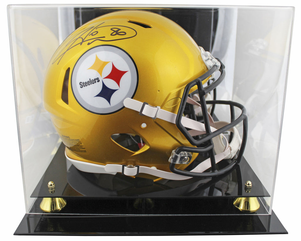 This Autographed Alternate Flash Riddell Full Size Speed Proline Helmet W/ Uv Mirrored Back Acrylic Display Case has been Personally Signed by Hines Ward of the Pittsburgh Steelers. This item is 100% Authentic to include a hologram by Beckett Authentication Services. This item will come with an affixed Beckett Authentication Services (BAS) authentication sticker, which includes a scannable QR code to verify authenticity. Please note that Beckett no longer provides serial-numbered COA cards, and the attached BAS sticker will serve as the complete authentication for this item. This is a BAS Witnessed Protection Program item which means a Beckett Authentication Service representative was present when this item was being signed. We conducted an autograph signing with Hines Ward where multiples of the same item were signed. While the photographs are representative of this item, the size, placement and strength of the signature may vary. Each item is hand signed, therefore, each autograph is unique. This item can be verified through BAS Witnessed.