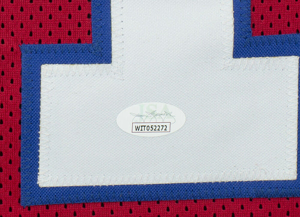 Featured is a Steve Grogan signed custom red pro style football jersey. This jersey was hand signed by Steve Grogan in the presence of a JSA authentication representative. Included with the jersey is a JSA witnessed hologram and certificate of authentication. This jersey would make a great addition to any sports memorabilia collection. This jersey has hand sewn numbers and letter and has NO logos or any affiliation with any manufacturer or team. It is simply intended as an autographed collectible. SPECIFICATIONS Autographed By: Steve Grogan Team: New England Sport: Football Authentication: James Spence Authentication (JSA)