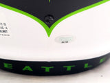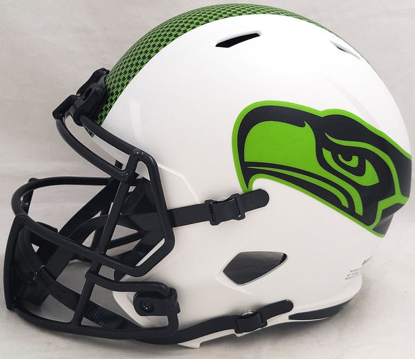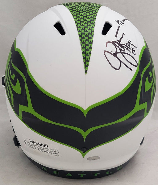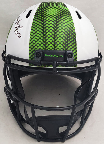 This is a Seattle Seahawks Lunar Eclipse White Full Size Replica Speed Helmet that has been hand signed by Steve Largent & Jim Zorn. The Eclipse helmets are delicate and may have some marks or scratches on them. This item was signed in the presence of a Mill Creek Sports representative and comes with their serial numbered hologram and matching certificate of authenticity.