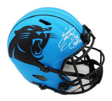 A Carolina Panthers Speed Replica Rave NFL Helmet hand signed by Steve Smith Sr. The item and signature are in excellent condition. Steve is one of the feistiest players in NFL history. His attitude and determination have made him a fan favorite in Baltimore and Carolina. Now bring home a piece of his exclusive memorabilia line that celebrates the career of a true NFL icon - and SQOR Sports are the exclusive memorabilia company for Steve Smith Sr. Buy from the only source for current, authentic Steve Smith memorabilia! - The item is accompanied by an exclusive /SQOR Sports Certificate of Authenticity - /SQOR Sports Serial Numbered and Databased Steve Smith Hologram - Picture of Steve from the Signing - The picture you receive will not have a watermark