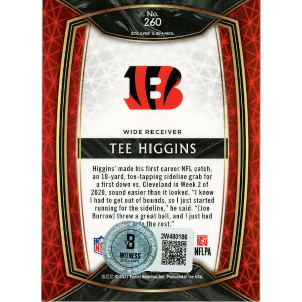 The number in the listing title is just an inventory sku for our records and is not the authentication number. This is the exact item you will receive, please see photos for condition. This is a Cincinnati Bengals Panini Select no. 260 Trading Card that was personally autographed by Tee Higgins includes "Who Dey" inscription. Includes a certificate of authenticity from Beckett Authentication Services (BAS) and Denver Autographs.FREE SHIPPING within the USA on orders over $10!