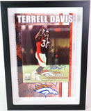 Terrell Davis Autographed "HOF 17" Inscribed Framed 8x10 Photo Own a piece of Denver Broncos and NFL history with this authentic Terrell Davis signed 8x10 photo, personally inscribed with "HOF 17" commemorating his Pro Football Hall of Fame induction. Product Features: Authentic Signature & Inscription: Hand-signed by Terrell Davis with "HOF 17" inscription JSA Certificate of Authenticity: Verified genuine autograph with tamper-proof authentication Professional Framing: Museum-quality 8x10 frame ready for display Hall of Fame Inscription: Special "HOF 17" marking his 2017 Hall of Fame induction Premium Photo Quality: Crystal-clear image showcasing the Broncos legend Investment Grade: Rare inscribed collectible from a Super Bowl champion The Terrell Davis Legacy Terrell Davis dominated the NFL during his legendary career with the Denver Broncos. A two-time Super Bowl champion, NFL MVP, and Super Bowl MVP, Davis was the driving force behind Denver's back-to-back championships in 1997 and 1998. His 2017 Pro Football Hall of Fame induction cemented his place among the greatest running backs in NFL history. Perfect For: Denver Broncos fans and collectors NFL Hall of Fame memorabilia enthusiasts 1990s football nostalgia collectors Sports memorabilia investors Unique gifts for Broncos Country faithful Display this remarkable piece that celebrates one of the most dominant running backs in NFL history. The "HOF 17" inscription makes this especially meaningful, marking the moment Davis received football's highest honor. Authenticity Guaranteed: JSA authentication ensures this is a genuine, investment-quality collectible celebrating a true NFL legend and Hall of Famer.