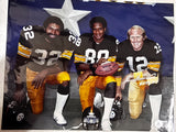 The product is an 11x14 photo of Terry Bradshaw, a former quarterback for the Pittsburgh Steelers, featuring his hand signature and two Super Bowl Most Valuable Player inscriptions. The authenticity of the autograph is confirmed by Beckett Authentication Services (BAS), making it a valuable collectible for fans of football and the Steelers. This original piece would be a prized addition to any sports memorabilia collection, showcasing one of the greatest players in NFL history.