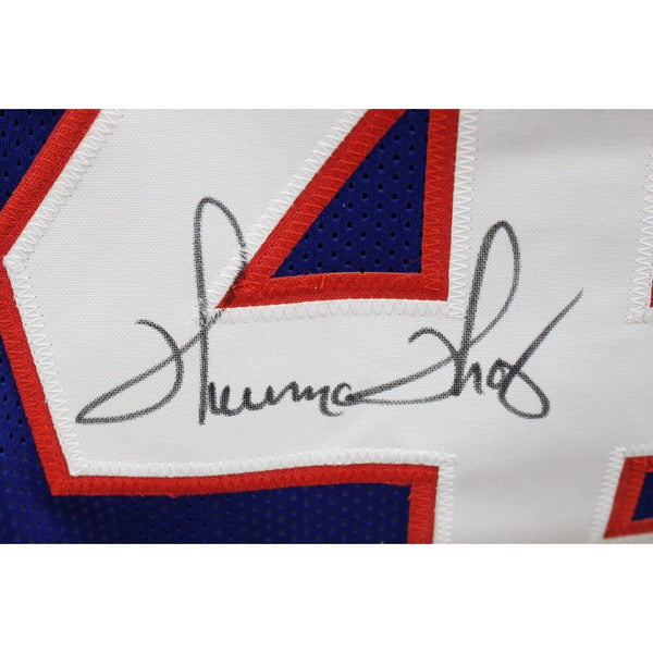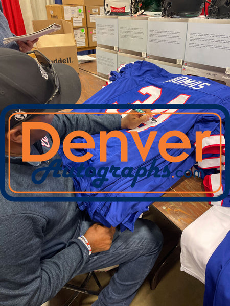 The number in the listing title is just an inventory sku for our records and is not the authentication number. The item pictured is a stock photo unless otherwise noted. This is a Pro Style Blue Jersey that was personally autographed by Thurman Thomas. Includes a certificate of authenticity from Beckett Authentication Services (BAS) and Denver Autographs.FREE SHIPPING within the USA on orders over $10!
