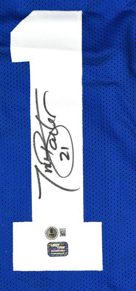THIS IS NOT AN NFL JERSEY. THIS HAS NO TAGS, NO LOGOS, NO EMBLEMS. This is a hand autograph of Tiki Barber of the New York Giants on a Custom Made (non-name brand) Authentic Style Jersey with stitched letters and numbers. This item has a Beckett Witnessed Authentication, which comes with a Beckett numbered sticker hologram and a QR Code for verification. You can view this item on the Beckett Authentication website. It was signed either at a public autograph appearance or a private signing. This is a stock photo of the item. Although you may not receive this exact item, the item you receive is virtually identical and brand new in great shape. Jersey size is XL. THIS IS NOT AN NFL JERSEY. THIS HAS NO TAGS, NO LOGOS, NO EMBLEMS. This is a hand autograph of Tiki Barber of the New York Giants on a Custom Made (non-name brand) Authentic Style Jersey with stitched letters and numbers. This item has a Beckett Witnessed Authentication, which comes with a Beckett numbered sticker hologram and a QR Code for verification. You can view this item on the Beckett Authentication website. It was signed either at a public autograph appearance or a private signing. This is a stock photo of the item. Although you may not receive this exact item, the item you receive is virtually identical and brand new in great shape. Jersey size is XL.