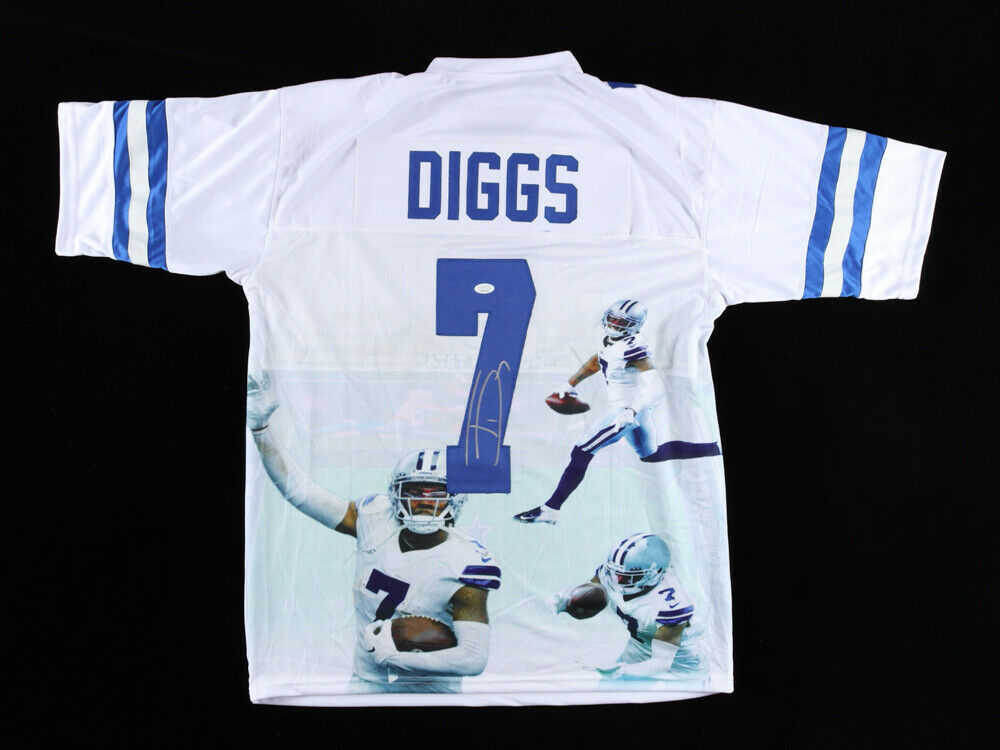 Custom on-field style jersey. Everything is sewn on, size XL. Hand-signed by Trevon Diggs. The lot / autograph(s) includes an official James Spence Authentication (JSA) hologram and matching COA for authenticity purposes. The signing of this item was witnessed by JSA.Authentication: JSA COA