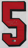 This Autographed White Dropshadow Pro Style Jersey has been Personally Signed by Trey Lance of the San Francisco 49ers. This item is 100% Authentic to include a hologram by Beckett Authentication Services. This item may come with the new Beckett Authentication hologram that has a scannable QR code rather than the traditional COA. If you would like to have a COA, you are welcome to reach out to Beckett for a printed certification once you receive your item. This is a BAS Witnessed Protection Program item which means a Beckett Authentication Service representative was present when this item was being signed. We have multiples of this same item. While the photographs are representative of this item, the size, placement and strength of the signature may vary. Each item is hand signed, therefore, each autograph is unique. This is a X-Large sized, non-branded, custom-stitched Jersey.