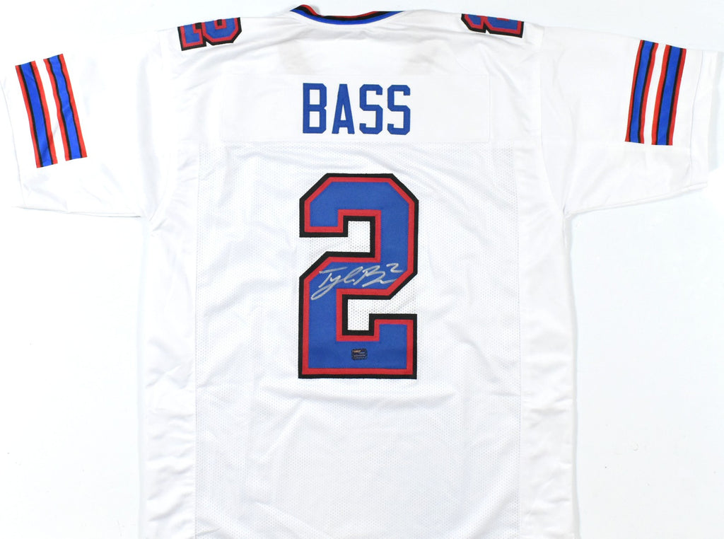 THIS IS NOT AN NFL JERSEY. THIS HAS NO TAGS, NO LOGOS, NO EMBLEMS. This is a hand autograph of Tyler Bass of the Buffalo Bills on a Custom Made (non-name brand) Authentic Style Jersey with stitched letters and numbers. This item has a Prova Authentication, which comes with a Prova numbered hologram. You can view this item on the Prova Authentication website. It was signed either at a public autograph appearance or a private signing. This is a stock photo of the item. Although you may not receive this exact item, the item you receive is virtually identical and brand new in great shape. Jersey size is XL. THIS IS NOT AN NFL JERSEY. THIS HAS NO TAGS, NO LOGOS, NO EMBLEMS. This is a hand autograph of Tyler Bass of the Buffalo Bills on a Custom Made (non-name brand) Authentic Style Jersey with stitched letters and numbers. This item has a Prova Authentication, which comes with a Prova numbered hologram. You can view this item on the Prova Authentication website. It was signed either at a public autograph appearance or a private signing. This is a stock photo of the item. Although you may not receive this exact item, the item you receive is virtually identical and brand new in great shape. Jersey size is XL.